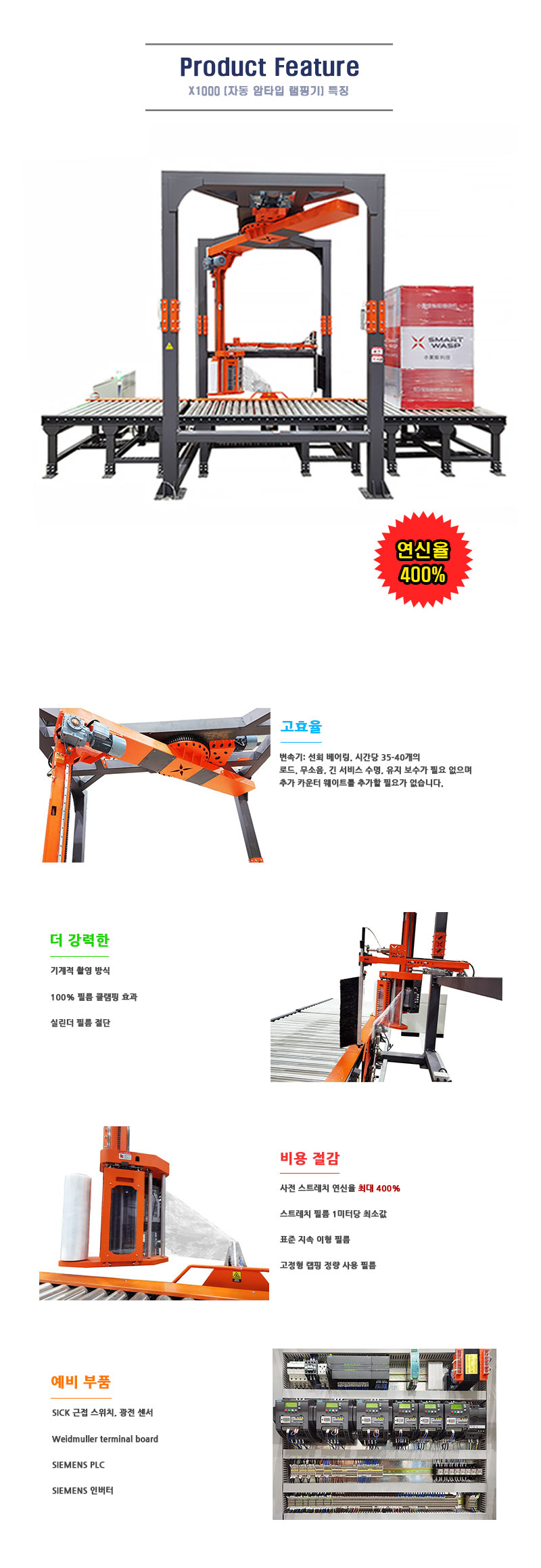 | 최대 포장 속도 | 시간당 35~40 파렛트 | 인버터 | X-Line |